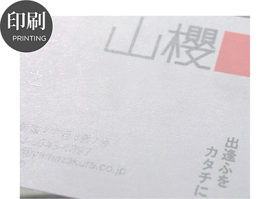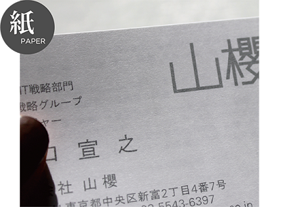 1931年の創業以来、名刺のトップブランドとして愛されている山櫻が、長年培ってきたノウハウを凝縮して開発し、2014年に発売した名刺専用紙さくらシリーズの「ホワイト」を採用。ホワイトは青みをおさえた明るい白色で、ロゴの色も映える。