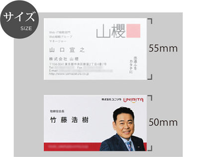 名刺サイズは一般的な91x55mmよりも若干小さい91x50mm。