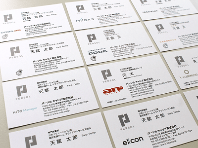 今回は、2016年7月にグループブランド「PERSOL(パーソル)」を新設し、「はたらいて、笑おう。」のスローガンでも認知度の高い、総合HR(人材)サービス パーソルホールディングス株式会社様の名刺をご紹介します。