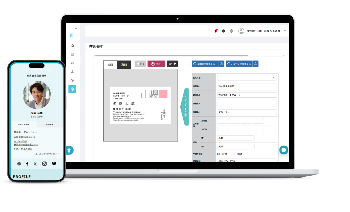 調査・整理現状の名刺レイアウトを精査し、名刺パターンと入力項目を決定します。 -